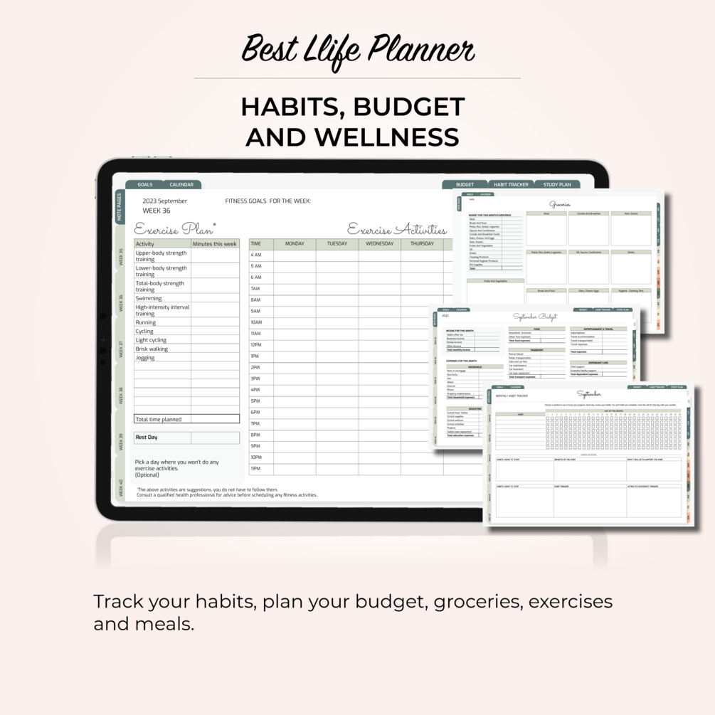 πΌ Self-Care Made Simple: Record gratitude moments, track habits, plan your exercises and meals.